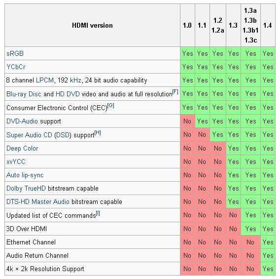 İsterseniz Hdmı versiyonlarını gösteren tabloyu inceleyerek hdmı teknolojisinin farklılıklarını gözden geçirebiliriz.Aşağıda tablodu görüldüğü üzere Hdmı 1.0 versiyonunda birçok özellikden yoksun bir şekilde seyrederken hdmı sürümleri geliştikçe 1.3 sürümüyle bir çok yeniliğe kavuştu.Gelişen teknoloji yerinde durmaksınız gelişmesiyle beraber hdmı 1.4 sürümüyle kendine 3 faklı özellik ekleyerek yeniliği bir kez daha ortaya koymuş bulunmakta.